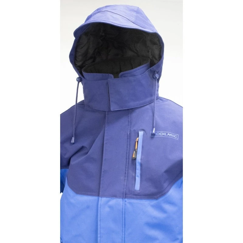 Thermally lined, wired peaked hood, velcro cuffs, two tone blueÂ