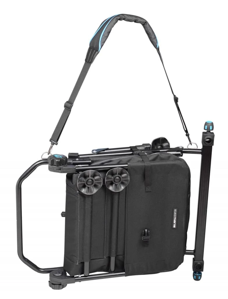 The Blackthorne Compact Chair is equipped with an adjustable back rest and can be folded flat for a compact transport format. The padded shoulder strap makes transportation to the bank easy and Compactable.
