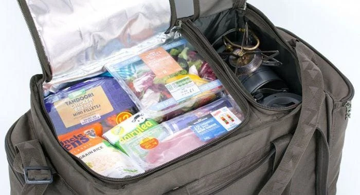Perfect for keeping your food and your eating kit together in one place. Ideal for the weekend carper. Includes 1 x plate, 1 x knife, fork and spoon. Insulated main compartment, front zipped pocket, side pockets plus cookware pocket, webbing carry handles and padded shoulder strap. Dimensions: 32cm (h) x 57cm (w) x 42cm (d)