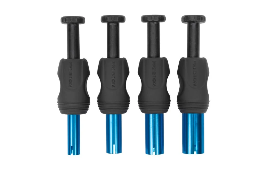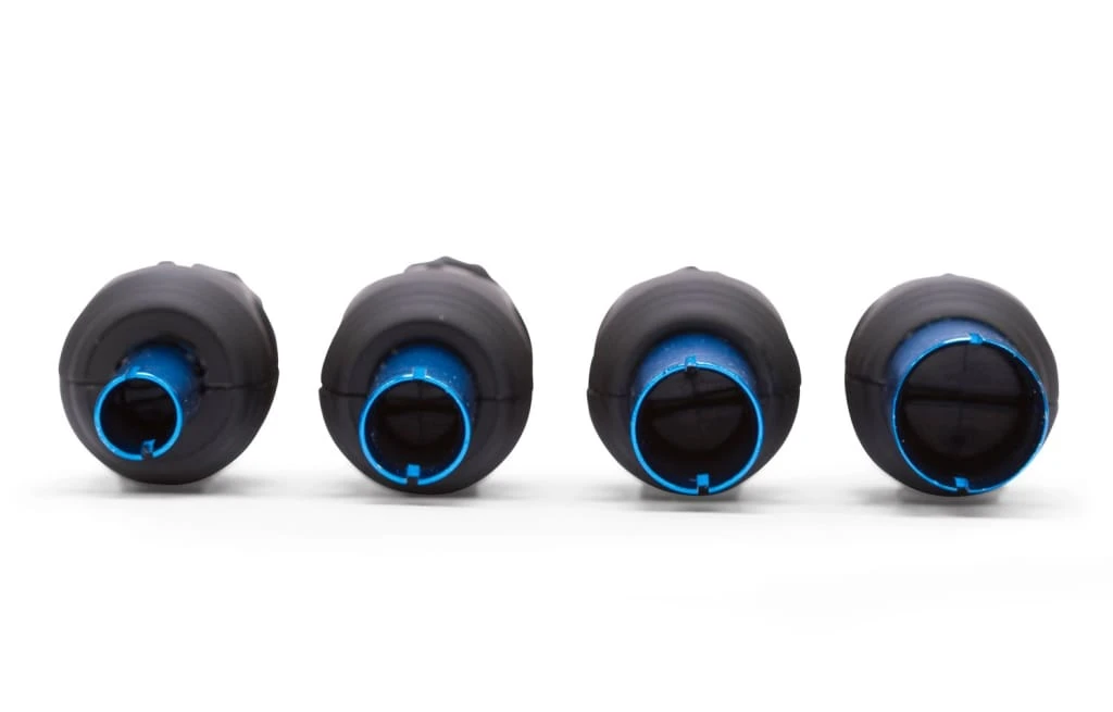 There are four punches included in the pack, 6mm, 8mm, 10mm and 12mm. Each punch has a spring loaded plunger which enables you to lock the punch at 2mm or punch much thicker baits when the spring is disengaged. Each punch also features an ergonomic handle and a black anodised barrel which has a sharp cutting edge, ensuring baits are punched quickly and easily every time.
