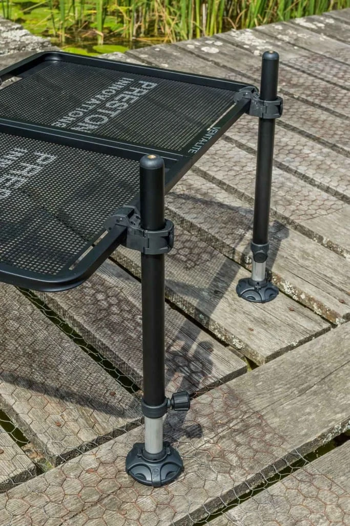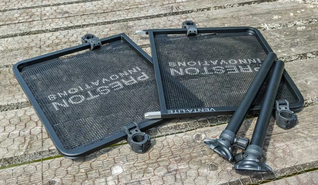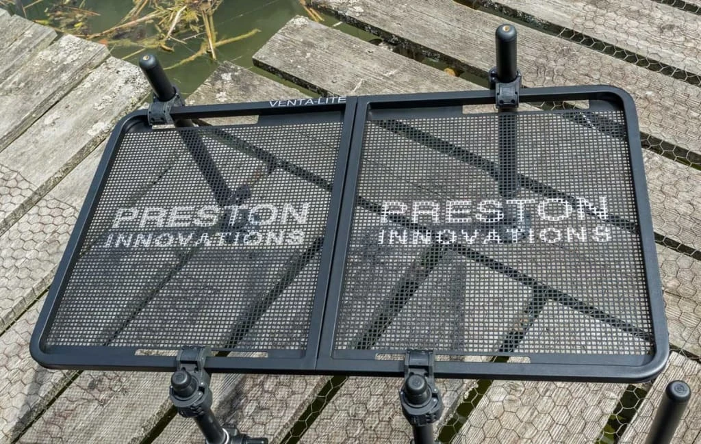 The Offbox Venta-lite XL Side tray is constructed in two sections, which can be simple slotted together. The tray is lightweight being made from Aluminium mesh which also helps to keep your bait cool in hot conditions. It is recommended that support legs or a Side Tray Support arm is used due to the large size of this tray, two 36mm legs are supplied as standard. The XL side tray can also be used as a single piece tray with one support leg if required.